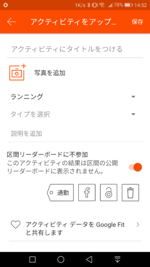 現在のアクティビティに写真を追加したり、Facebookに連携することが可能です。