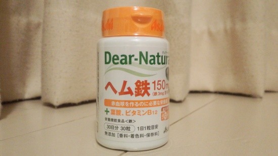 食事だけでは、鉄分の摂取が難しいのでサプリメントも飲むことに。アサヒのディアナチュレのヘム鉄を1日1粒飲むことにしました。
